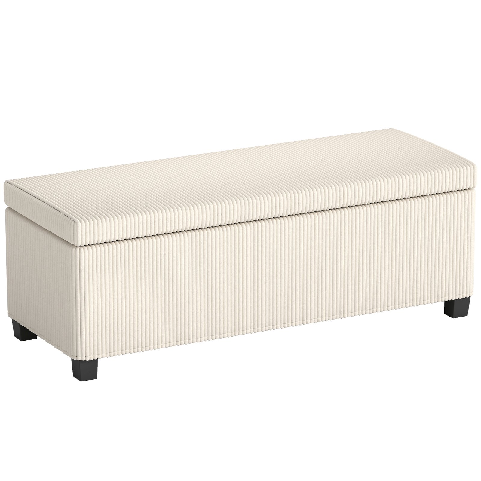 Beautiful home style, forever, in storage form with this HOMCOM ottoman. With 84L of storage, there’s plenty of room for bedroom essentials, blankets, small soft furnishings and more. With a padded top you can sit comfortably. Finished with soft and beautiful corduroy upholstery.
