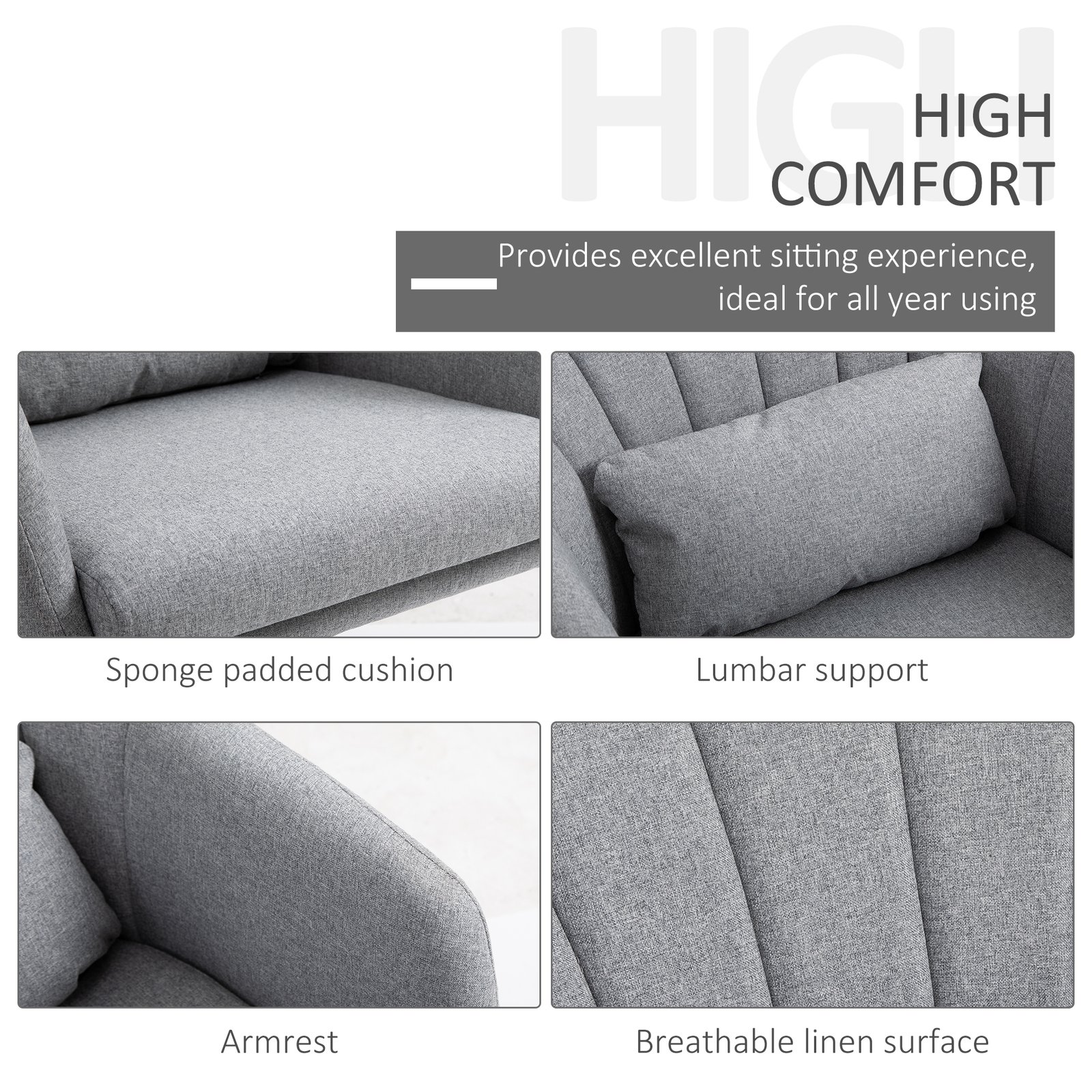 • Comfortable: The comfy chair is filled with thick sponge and wrapped in breathable linen-feel fabric. Large seat cushion and small back pillow included.