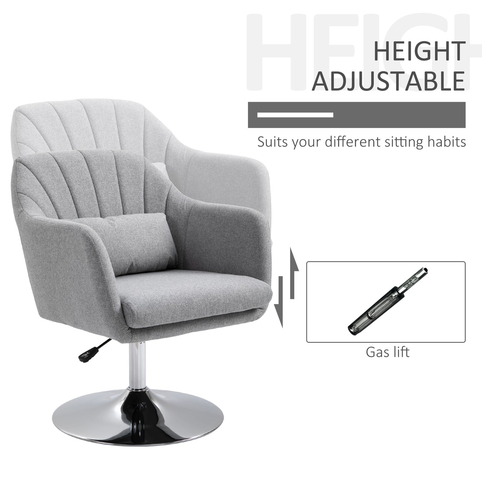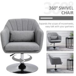 HOMCOM Swivel Linen Fabric Accent Chair for Living Room Contemporary Vanity Armchair with Adjustable Height Thick Cushion Lumbar Support Armrest for Bedroom Office Light Grey
