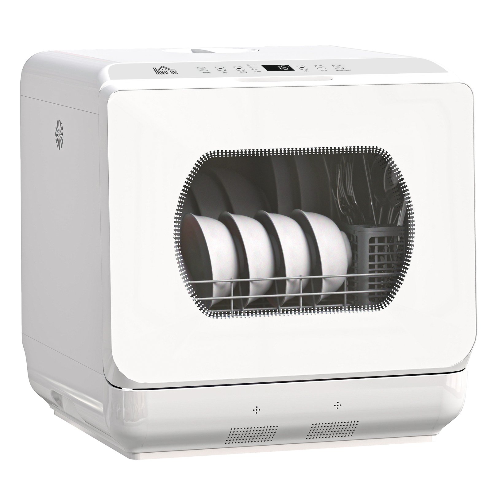 Say goodbye to the hassle of manual dishwashing, anywhere, with this HOMCOM tabletop dishwasher! It has six programmes: intensive, efficient, normal, rapid, fruit wash and drying. The efficient spray arm ensures sparkling clean dishes every time. A compact dishwasher, suitable for four-person households.