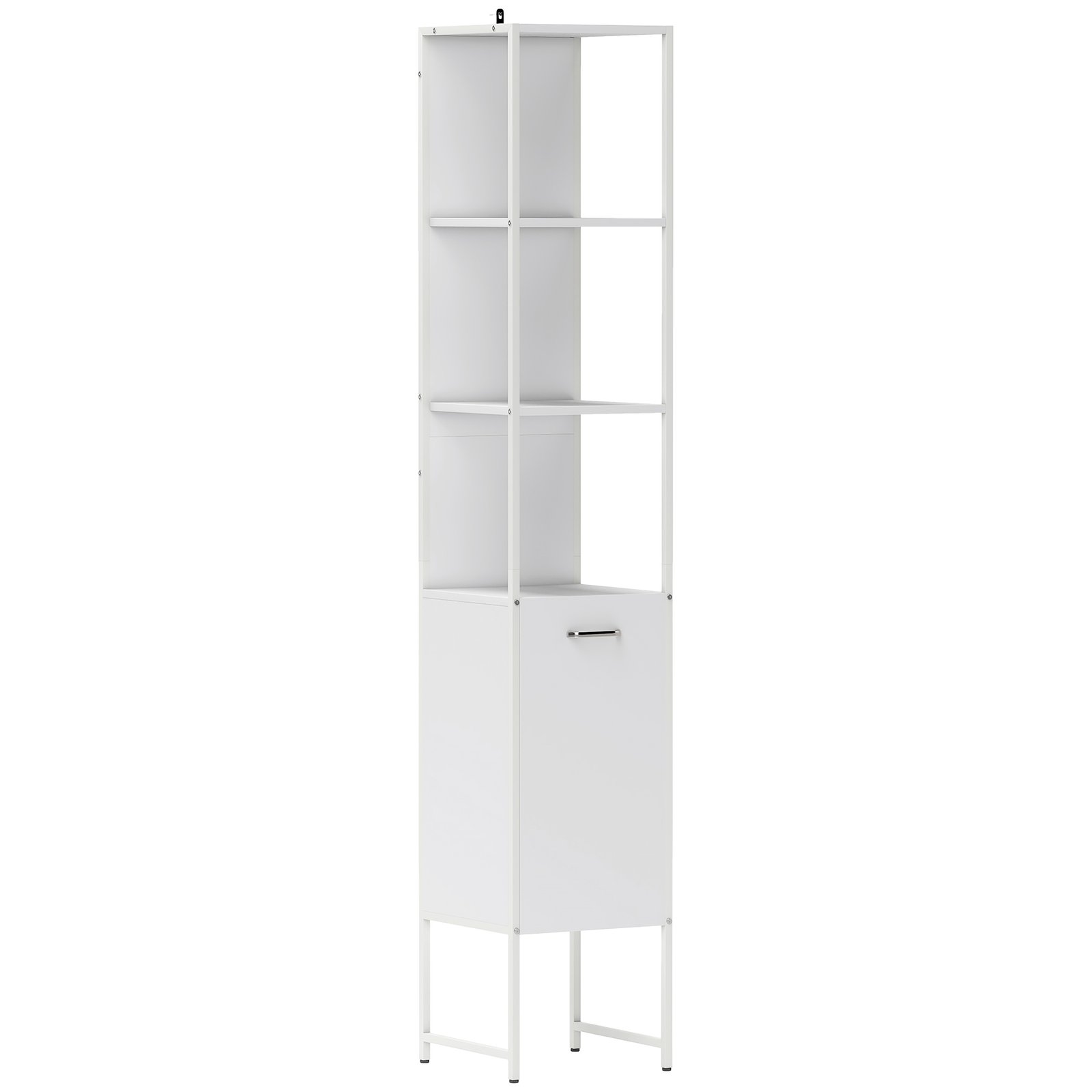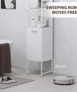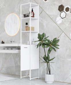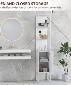 Maximise your bathroom’s potential with the tall bathroom cabinet from HOMCOM. This slim bathroom storage unit offers a blend of three open shelves and two closed compartments, adapting to all your essentials with a five-level adjustable shelf. Its narrow, tall design efficiently utilises space, ensuring every inch of your bathroom shines with neatness and accessibility.
