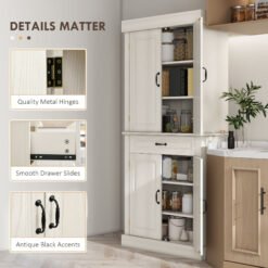 HOMCOM Tall Kitchen Cupboard, Kitchen Pantry Cabinet with Drawer, Shelves, Cream White