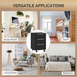 Organise your home office with this three-drawer filing cabinet. The central locking system keeps documents safe and secure: it secures all the drawers at once. The three drawers and offer lots of storage for files, stationary and more. It is a flexible storage solution for home office, study, bedroom or living room.