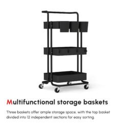 - Three baskets, for plenty of storage. Top basket divided into 12 separate sections