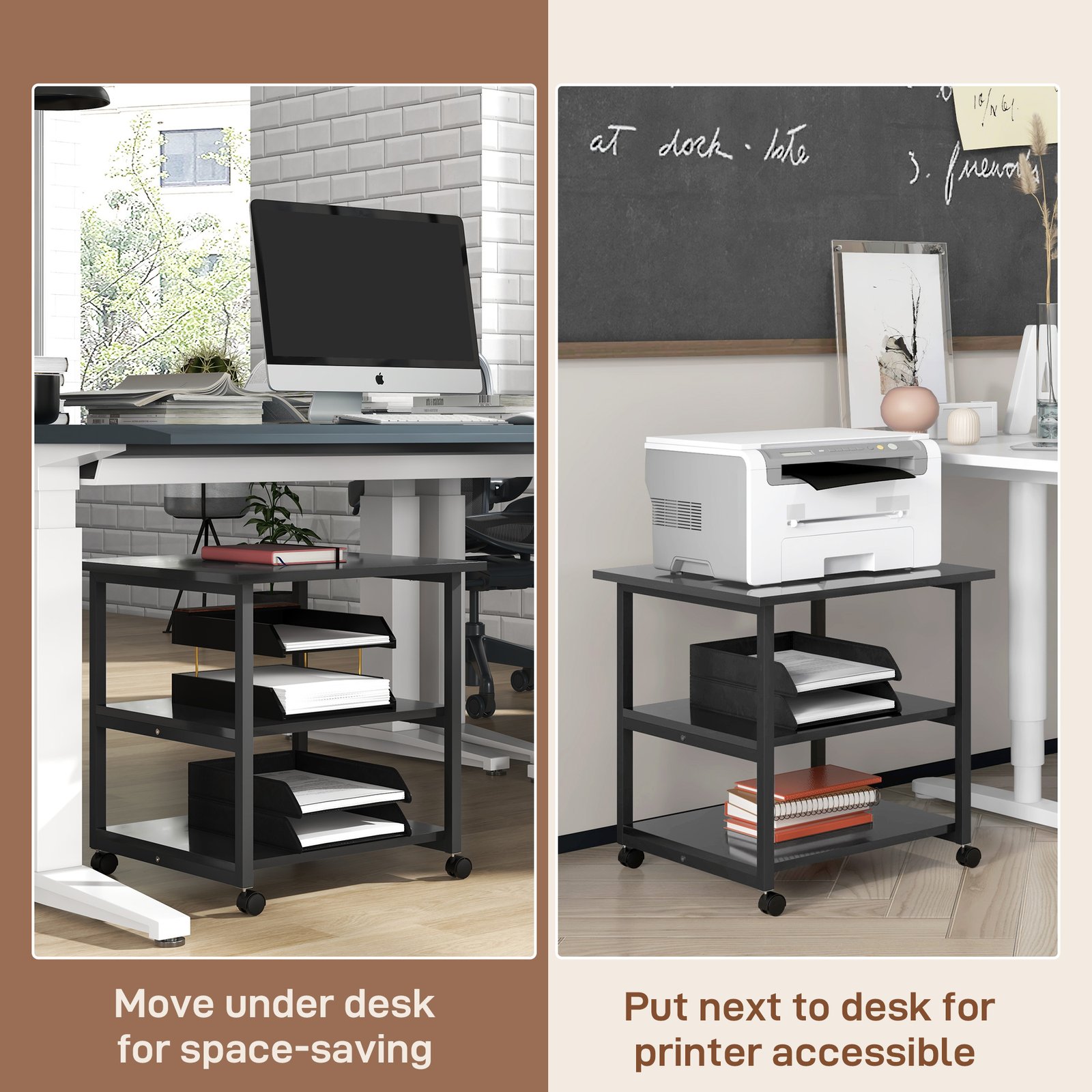 A simple space saver for your home office, with this HOMCOM printer stand. The three-tier design offers plenty for keeping work supplies and a machine all together, in one spot. The steel frame means a strong, supportive core, finished with wheels and two brakes to move easily and have stop in place where needed.