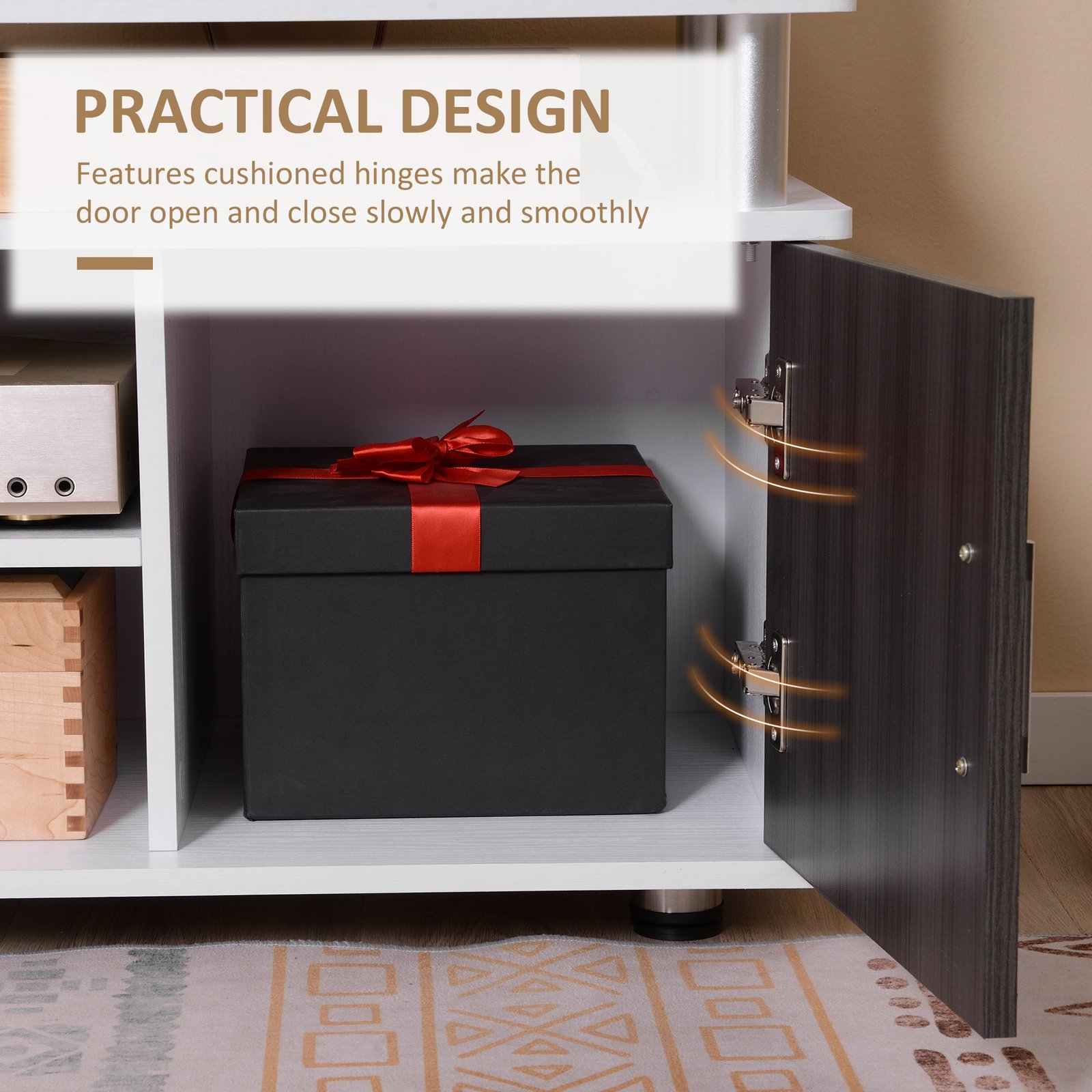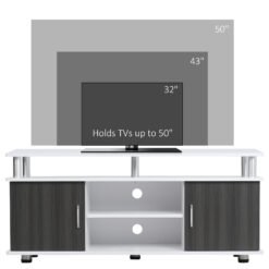HOMCOM TV unit blends perfectly into your modern, simple lifestyle. It features the large top panel which holds up to 120cm flat panel TV screen. There are also open display shelves to hold your entertainment equipment and two compartments with doors for your loose stuff such as CDs, DVDs, and games. Designed to be lightweight and space-saving. The cable management system helps you maintain a tidy entertainment space.