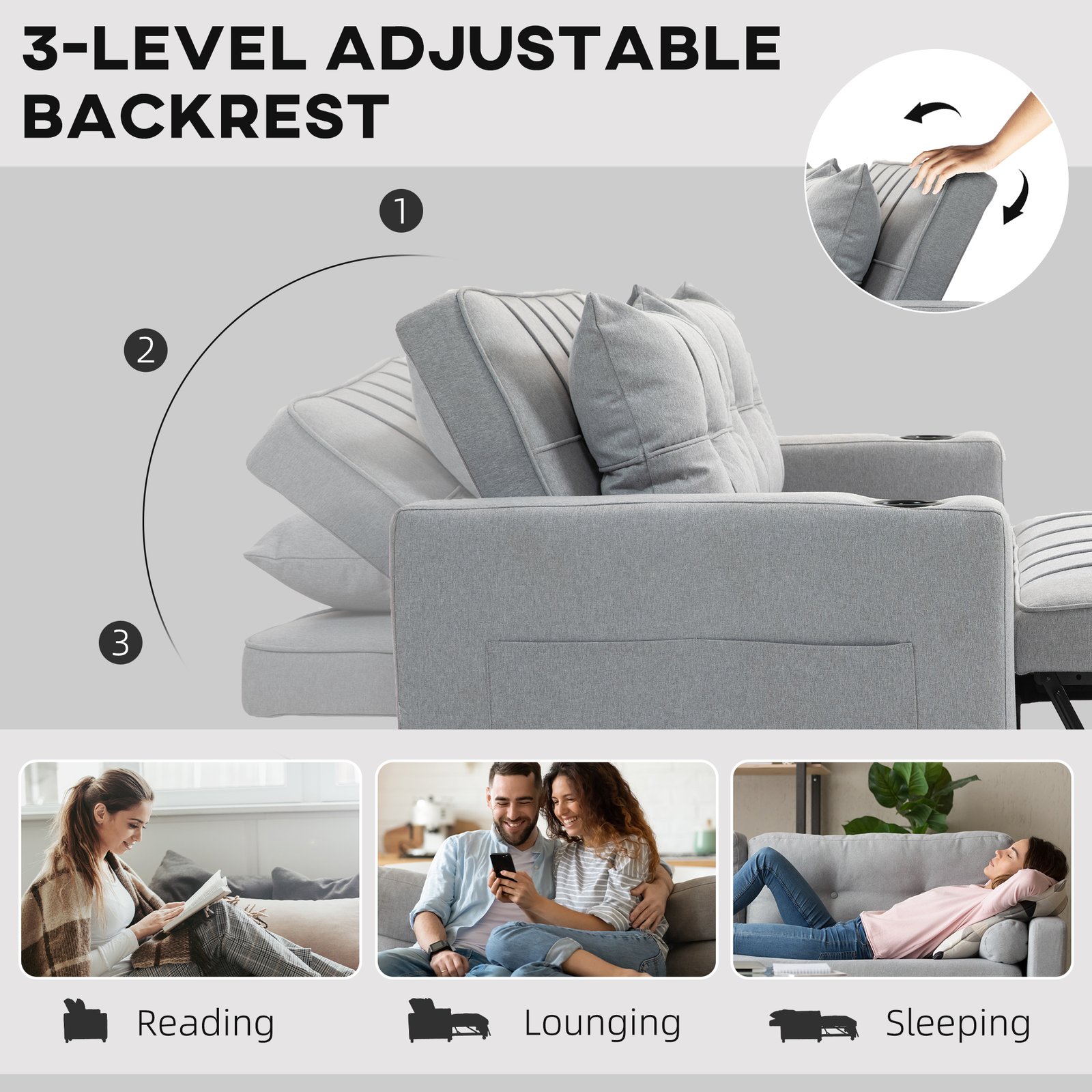 From sitting to sleeping, this HOMCOM click clack sofa bed does it all. From a sofa to a double bed: a handy double-use piece. The three-level adjustable back allows you to set to the angle you find most comfortable. Filled with high-density sponge and wrapped in smooth linen-look upholstery, this two-seater sofa is a soft and comfortable piece – filled with ‘S’ springs and elastic bands to keep the shape. Complete with handy pockets and cup holders.
