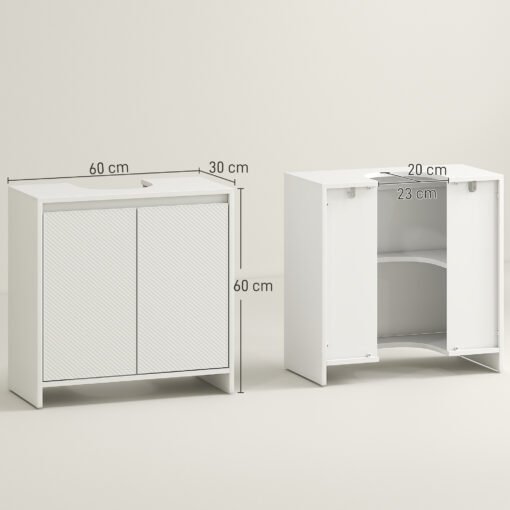 Refresh your bathroom with the HOMCOM under sink storage cabinet — a smart solution that fits neatly beneath your sink thanks to its U-shaped cut-out. With two handy shelves for organising toiletries and doors decorated in a subtle diamond pattern, this bathroom sink cabinet brings both charm and everyday practicality to your space.
