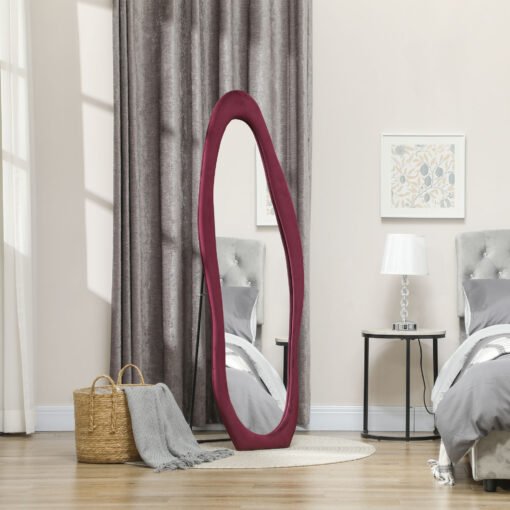 Fun and funky, this HOMCOM wavy mirror creates a statement in your home and beyond. The wavy shape, block colour and velvet-feel finish of the frame all work together to give it a bold, retro look; let it work alongside your furniture, or give it a place which allows it stand out and command attention forever more. Thanks to the full length and thick glass, you can see yourself fully and clearly: you’ll be leaving your home confidently forever more.