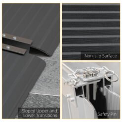 HOMCOM’s all about making your life on the go easier with our aluminium wheelchair ramp. These ramps are tough and lightweight, made from strong aluminium alloy. We’ve taken care of safety too they come with a specially treated non-slip surface, raised edges on both sides and an extended tail plate design. And don’t sweat the transportation the threshold ramp is foldable, so you can stash them in your vehicle. Ideal for wheelchairs, scooters, bikes and any other tricky-to-move wheels.