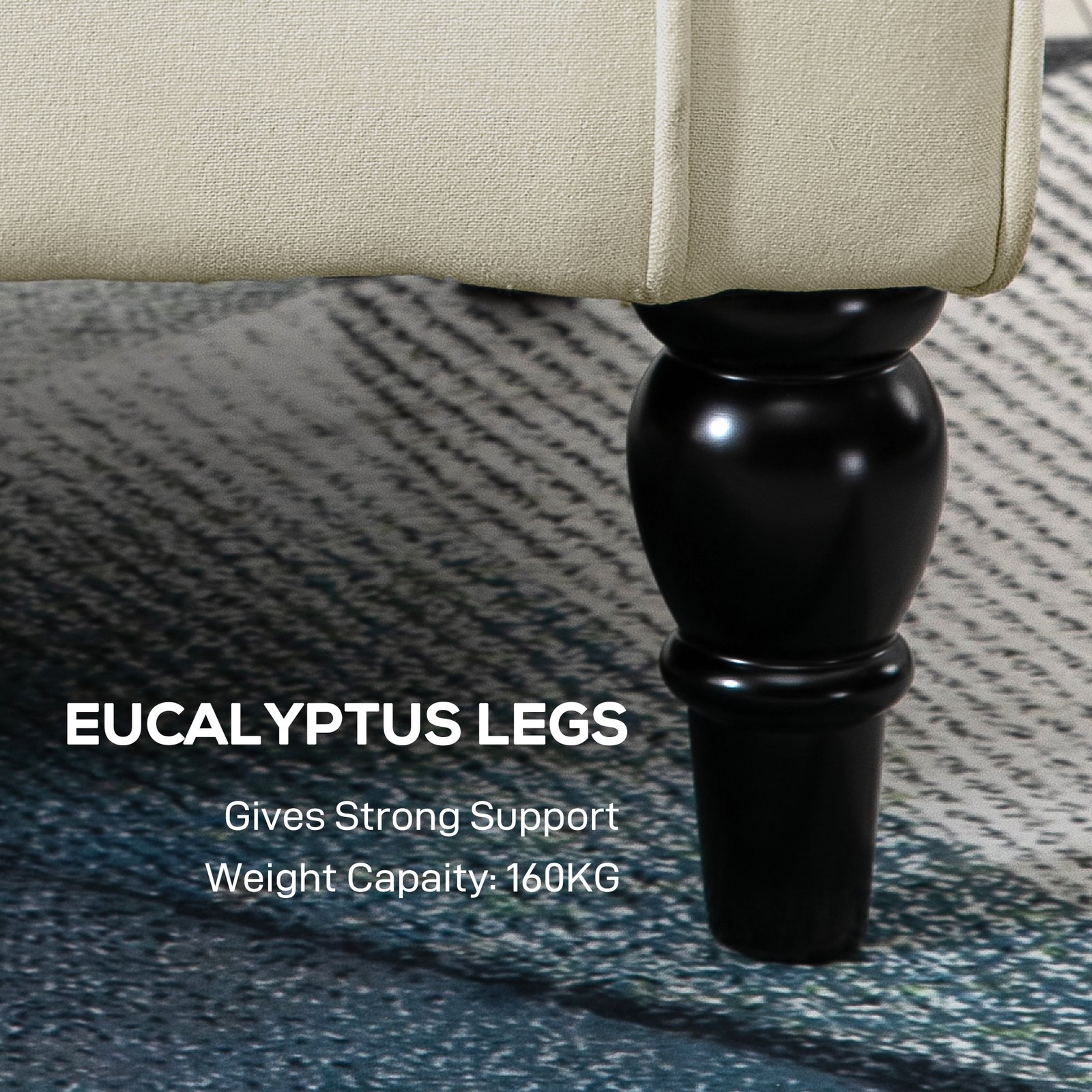 - Wooden frame and legs for strong support
