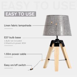 A modern side table lamp suits a variety of settings from contemporary, rustic, traditional to loft style. Highlighted by 3 sturdy wooden legs, the bedside table lamp stands out in any dcor. Aside the obvious value, users appreciate how simple the tripod table lamp is Lampshade in a natural-look fabrics mimics the natural feel of the design while diffusing the glow from the light bulb. This small table lamp is the perfect addition to your living room and bedroom.