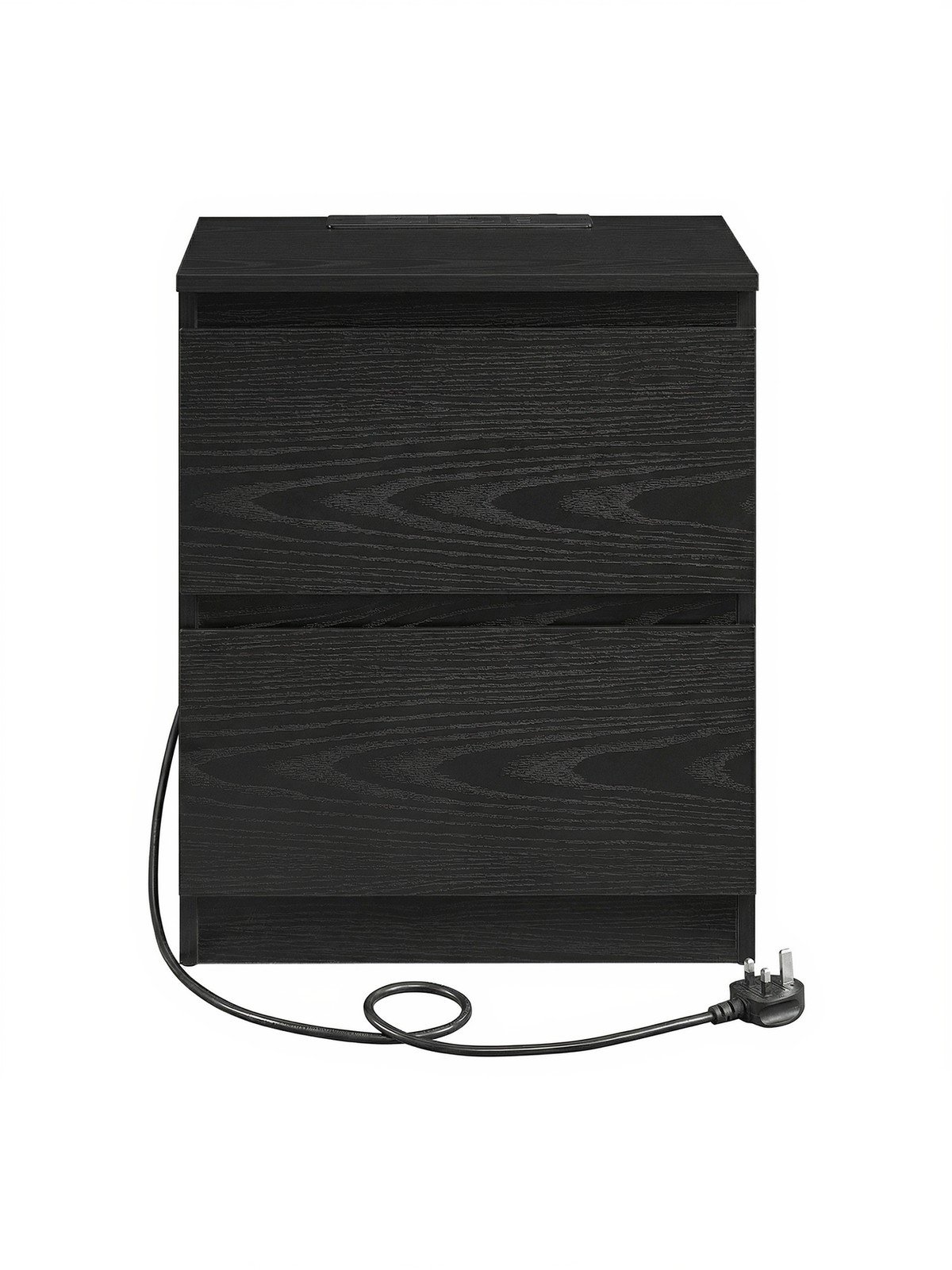 VASAGLE KAILYN Collection – Nightstand with Charging Station, Bedside Table with Drawers, Side End Table, 2 AC Outlets, 2 USB Ports, for Living Room, Bedroom, Study, Ebony Black LET621B01