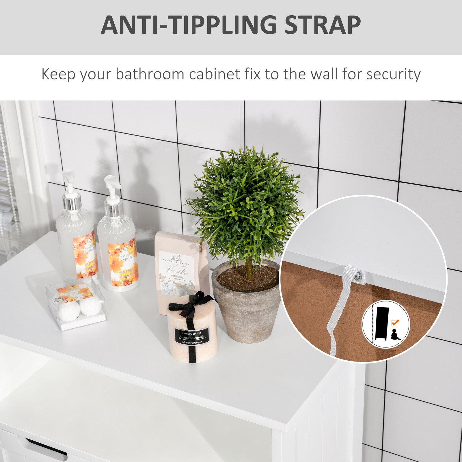 • DURABLE: Made from MDF, the bathroom storage unit is suitable for daily use, with a water-resistant finish for extra protection. Anti-tipping straps for safety.