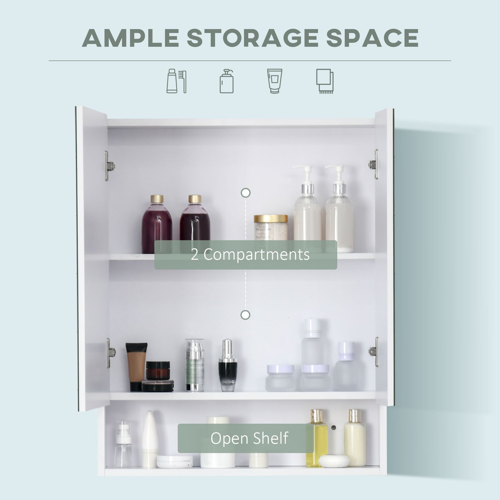 Create a stylish and organised bathroom with this kleankin mirror bathroom cabinet, which blends storage function and elegance. Designed to support your daily routine and neatly store essentials, its melamine finish and cushioned door provide durability and convenience.