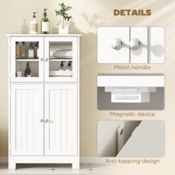 • DUO STORAGE: Features concealed bottom storage and a top storage area with two glass doors to see inside easily. Suitable for holding your toiletries, towels and other bathroom accessories together.