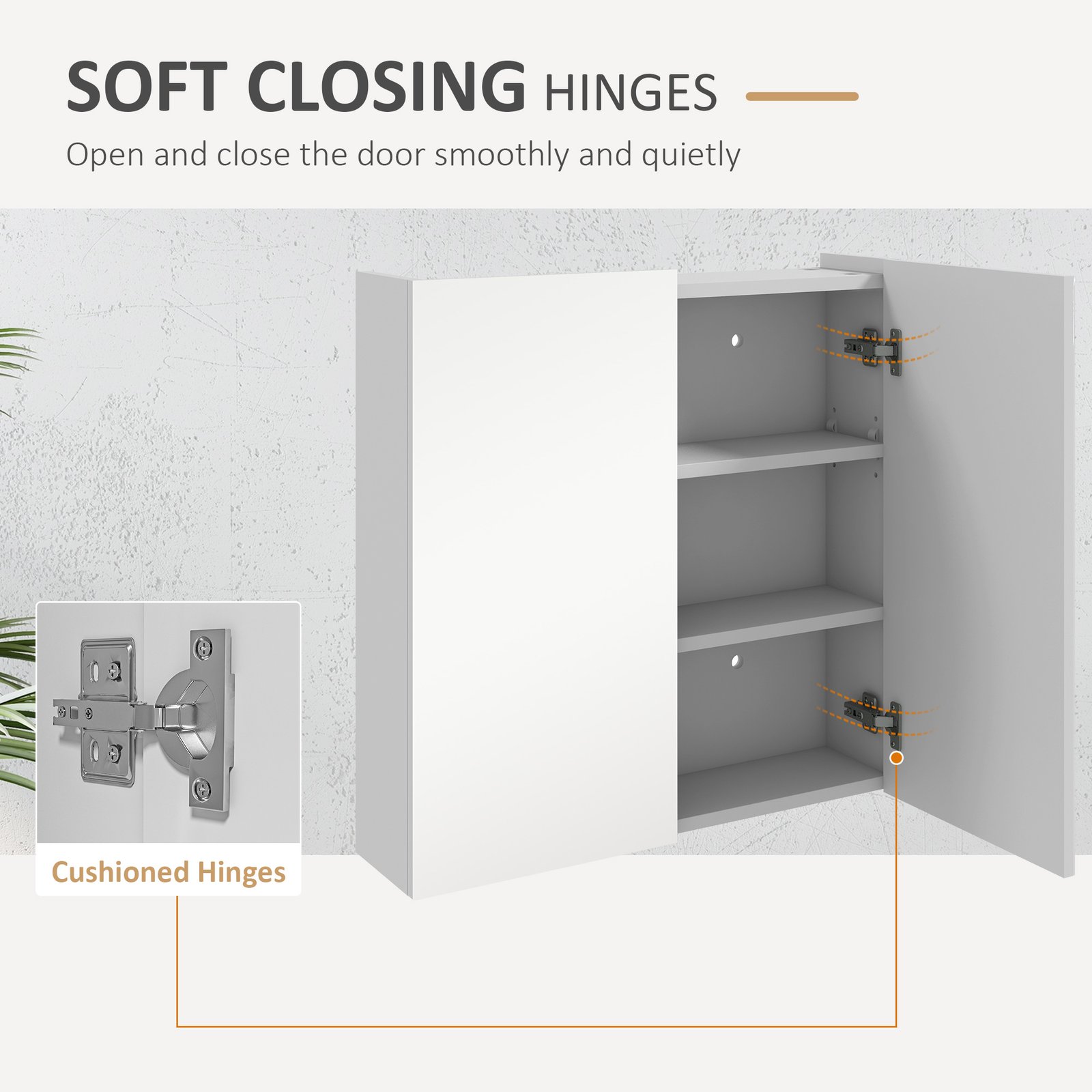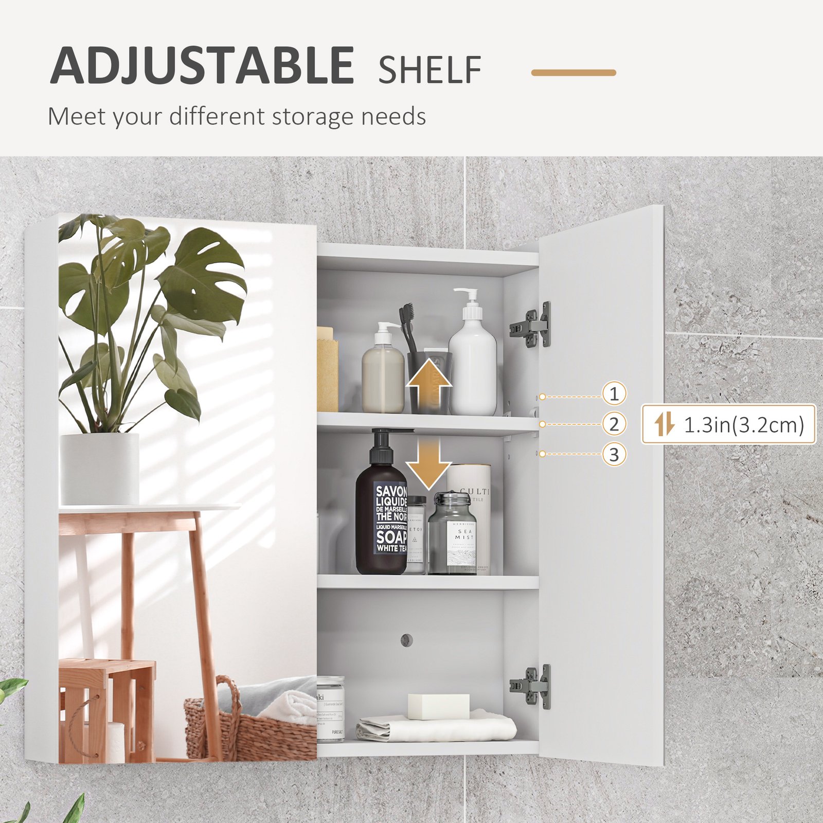 kleankin Bathroom Mirror Cabinet, Wall Mounted Bathroom Storage Cupboard with Adjustable Shelf, 60W x 15D x 60Hcm, High Gloss White