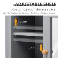- Features three open shelves and a side cupboard for convenient storage – toiletries, bath products, soaps, small towels etc.