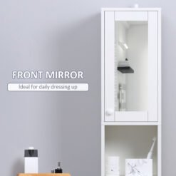 This kleankin bathroom cabinet provides plenty of storage space, thanks to its two open shelves and two cupboards. It also comes with a mirrored door, making it easy to get ready. Inside each cupboard there is an adjustable shelf: move each to three different levels to choose a storage size good for you. Made from particle board, this cabinet is durable and comes with anti-tipping straps to securely fix to the wall.