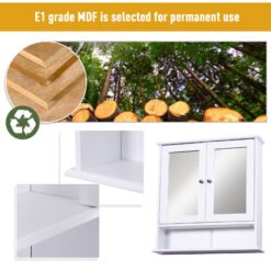 kleankin Wall-mounted Bathroom Cabinet Mirror Door Organiser Storage Shelves Living Room White