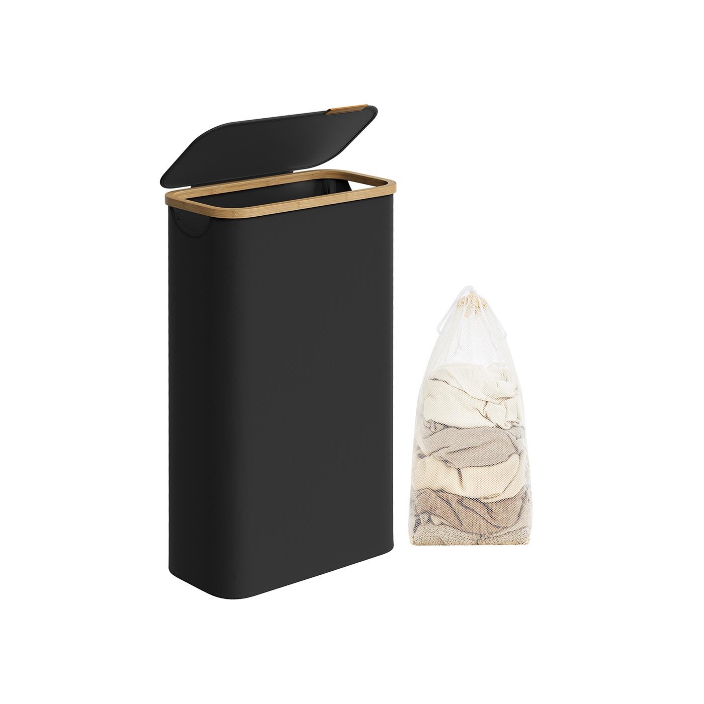 SONGMICS Laundry Basket with Lid, Slim Laundry Hamper, Space-Saving, Removable Mesh Liner, Oxford Fabric, Bamboo Handles, Collapsible
