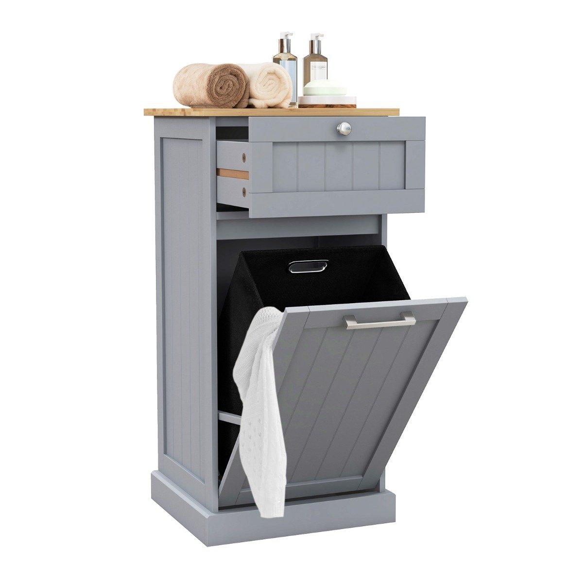 Laundry Cabinet with Basket Freestanding Tilt Out Laundry Hamper with Drawer-Grey