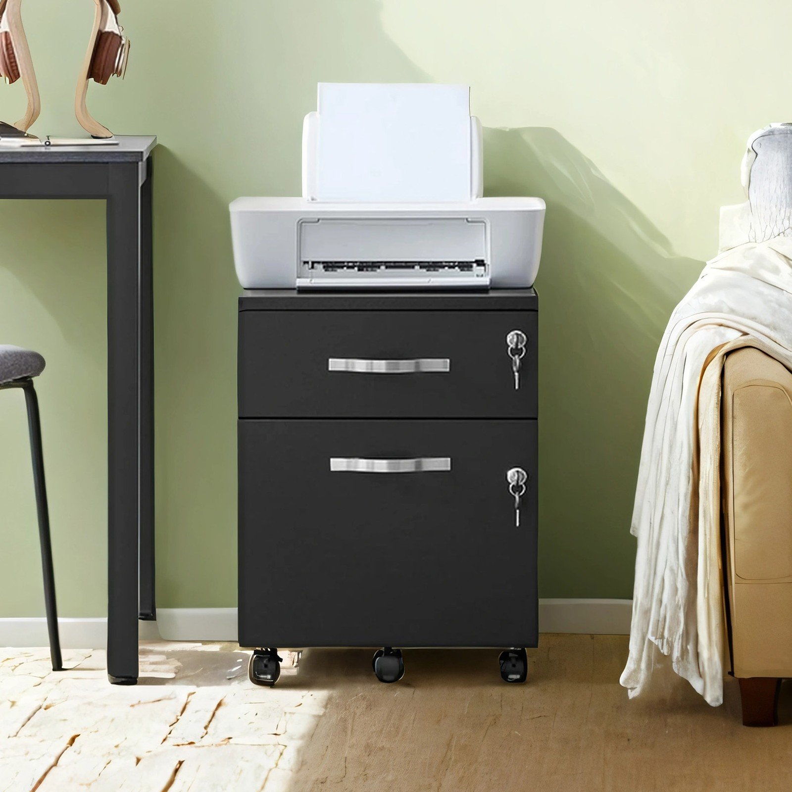 Lockable File Cabinet with 2 Drawers, Black