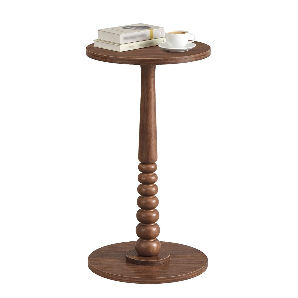 MARIEL Collection – Round Side Table with Solid Wood Leg Chestnut Walnut