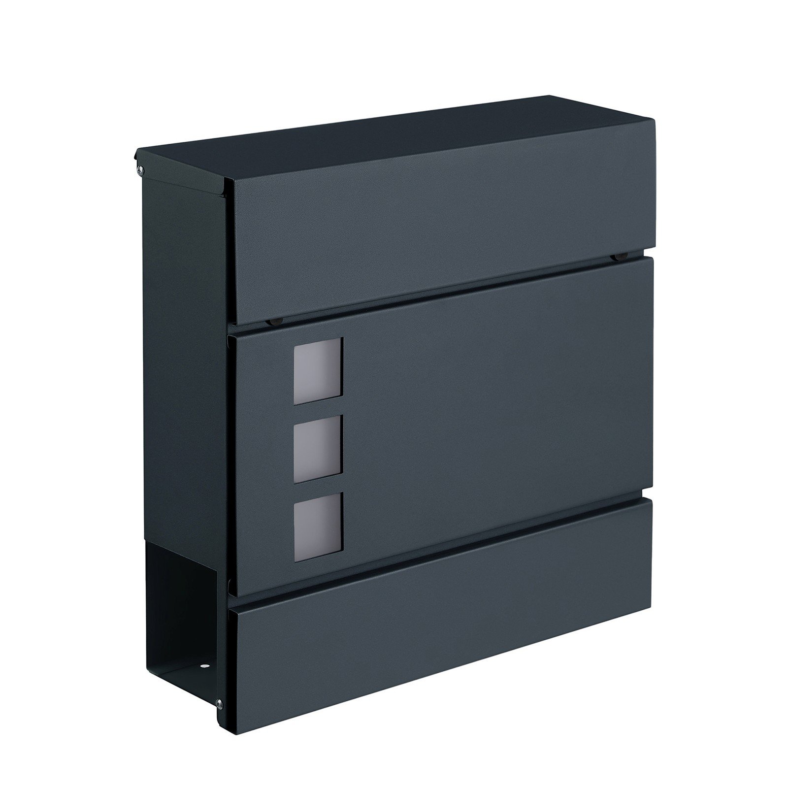 A Compact Shelter for Your Mail: Did the postman leave your post on the floor? Got your mail wet on rainy days? Tired of mail disappearing? The SONGMICS mailbox comes to the rescue by providing your mail a compact shelter. Made from zinc-plated steel and with a powder-coated finish, this mailbox protects your post from the elements for long-lasting service.Details Speak for Themselves: The mailbox features a multitude of details that exceed your demands. The flap lid protects the lock from water and rain; the newspaper holder allows for extra convenience; and included mounting hardware makes installation a breeze.Specifications:Colour: Anthracite GreyMaterial: Zinc-Plated SteelProduct Size: 37 x 10.5 x 37 cm (L x W x H)Product Weight: 3.4 kgPackage Contents:1 x Mailbox2 x Key4 x Screw4 x Expansion Bolt4 x Rubber SpacerSONGMICS Notes:For added longevity, it’s recommended to mount the mailbox under an eave or other protected areas.