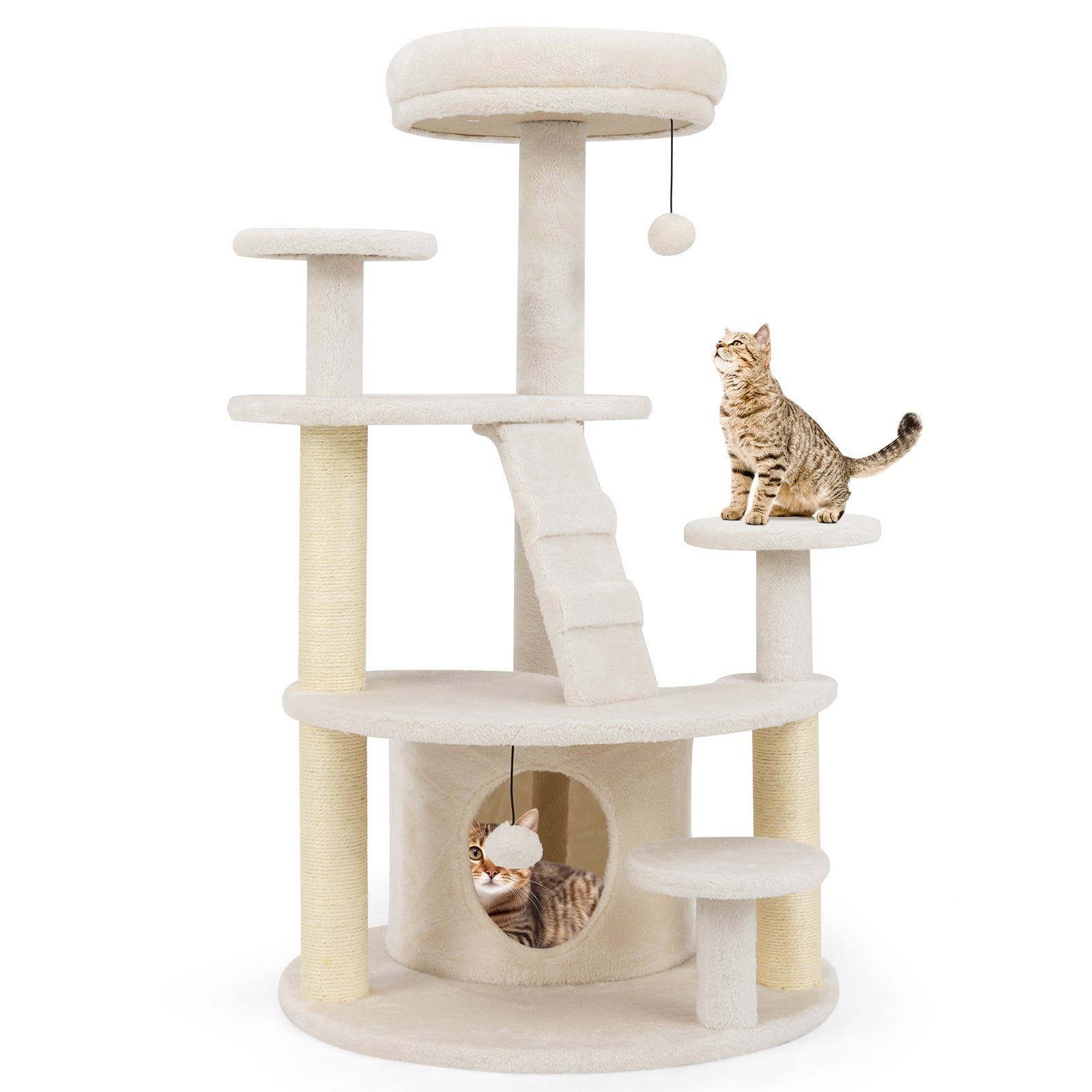 Colour: Beige/Gray Material: Engineered Wood, Sisal, Plush Fabric Product Dimensions: 64 x 60 x 101 cm(L x W x H) Base Diameter: 59cm Net Weight: 11 kg Each Layer Maximum Weight: 15kg Box QTY: 1 (May vary by batch) Package Includes: 1 x Cat Tree 1 x Instructional Manual