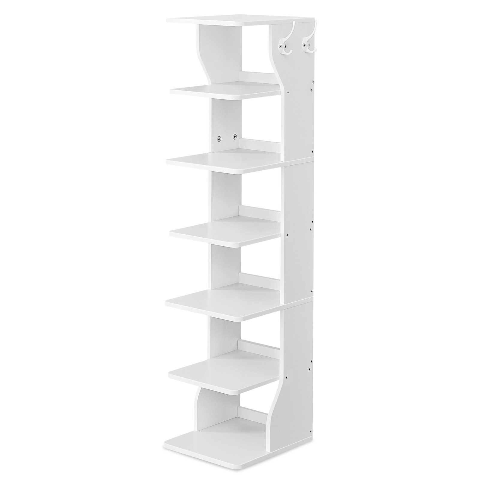7-Tier Vertical Shoe Rack, Narrow Shoe Storage Organizer with Hooks, Slim Corner Shoe Tower Rack, for Entryway, Bedroom, Black