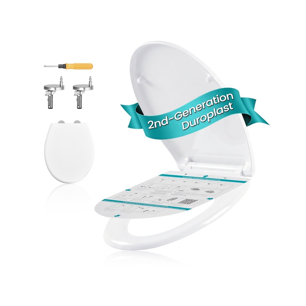 SONGMICS O-Shape Toilet Seat Soft Close, with Handle, Quick-Release, Universal Toilet Seat, Easy Installation, Duroplast, 300 kg High Load, Heavy-Duty, White BTL101WZ01