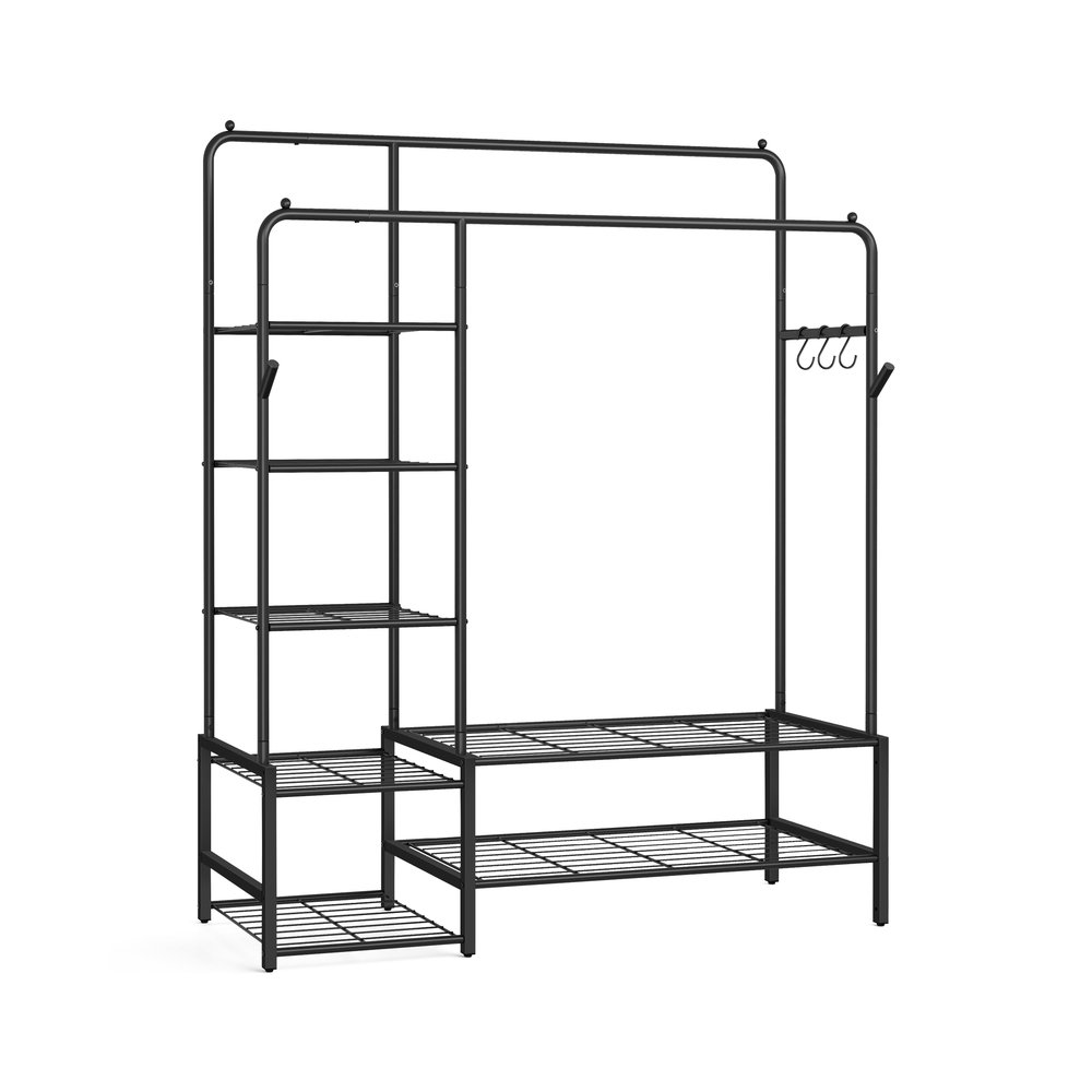 SONGMICS Clothes Rack, Open Waedrobe, Metal Coat Rack with 7 Shelves, Hanging Rods, for Bedroom, Living Room, Hallway, Black HSR182B01
