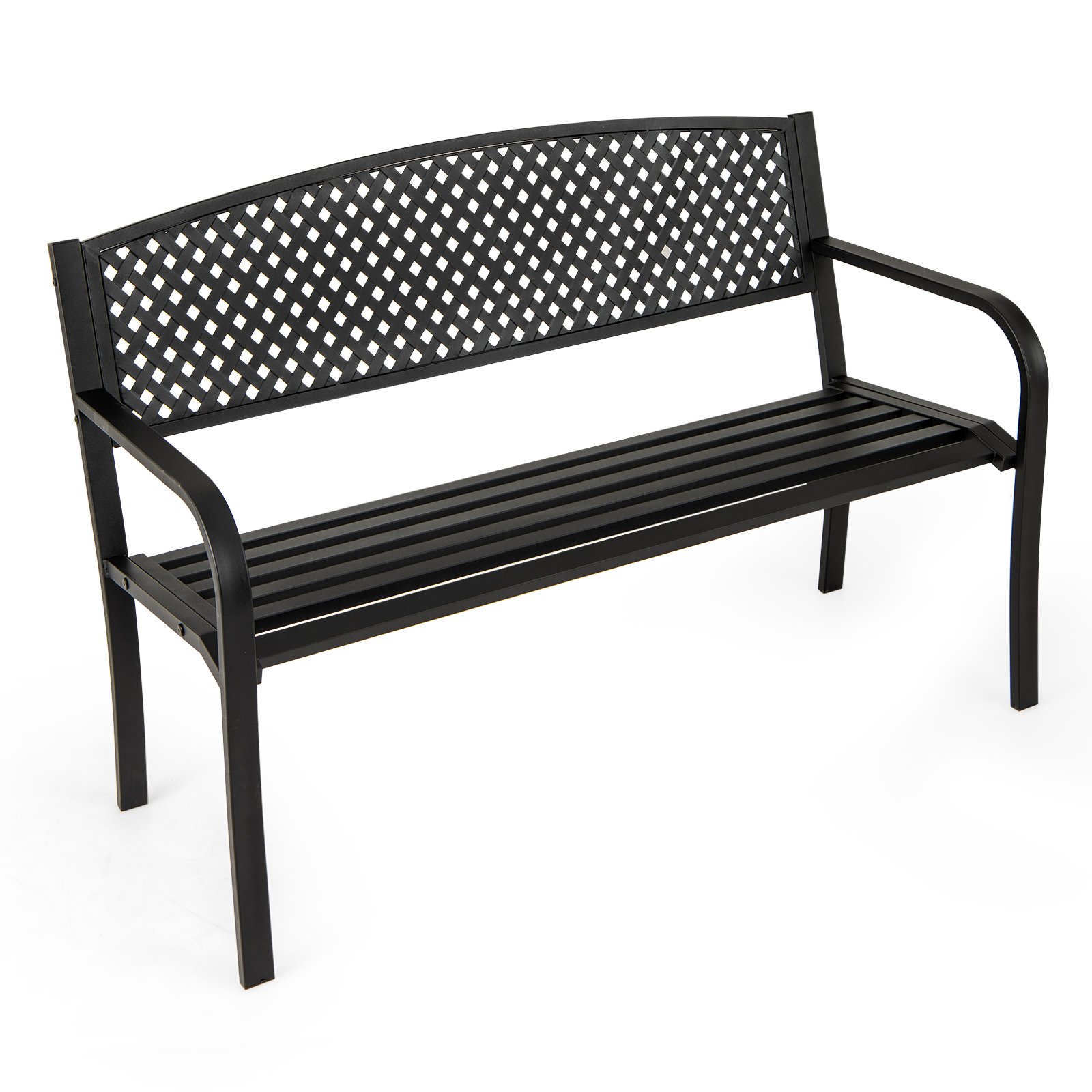 Outdoor 127CM Garden Bench with Patterned Backrest and Curved Armrests-Black