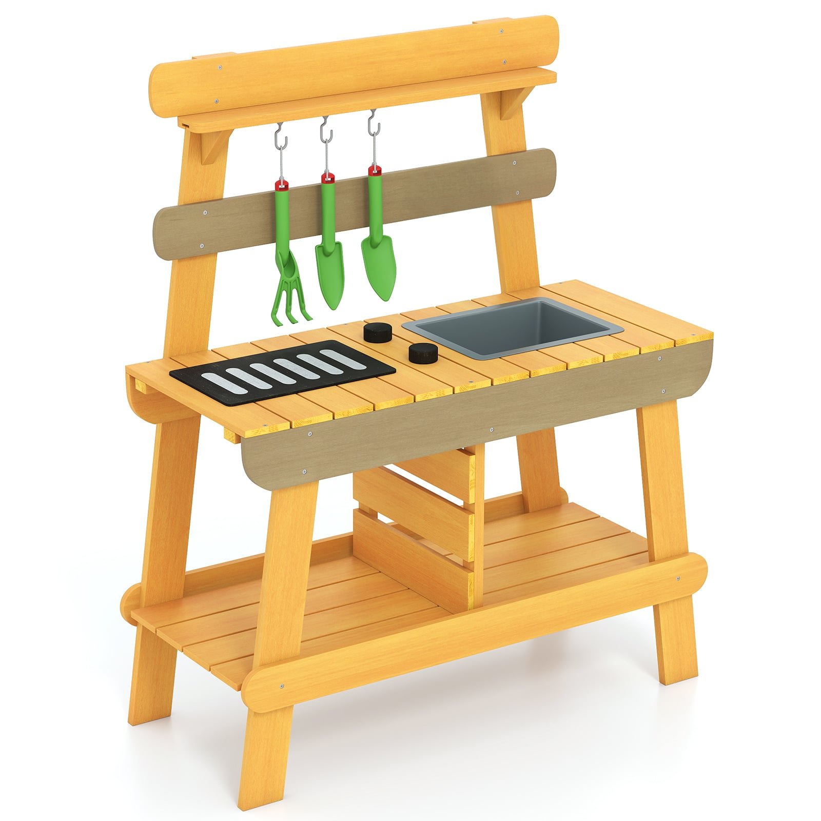Outdoor Mud Kitchen for Kids Toddler Wood Pretend Play Kitchen-Yellow