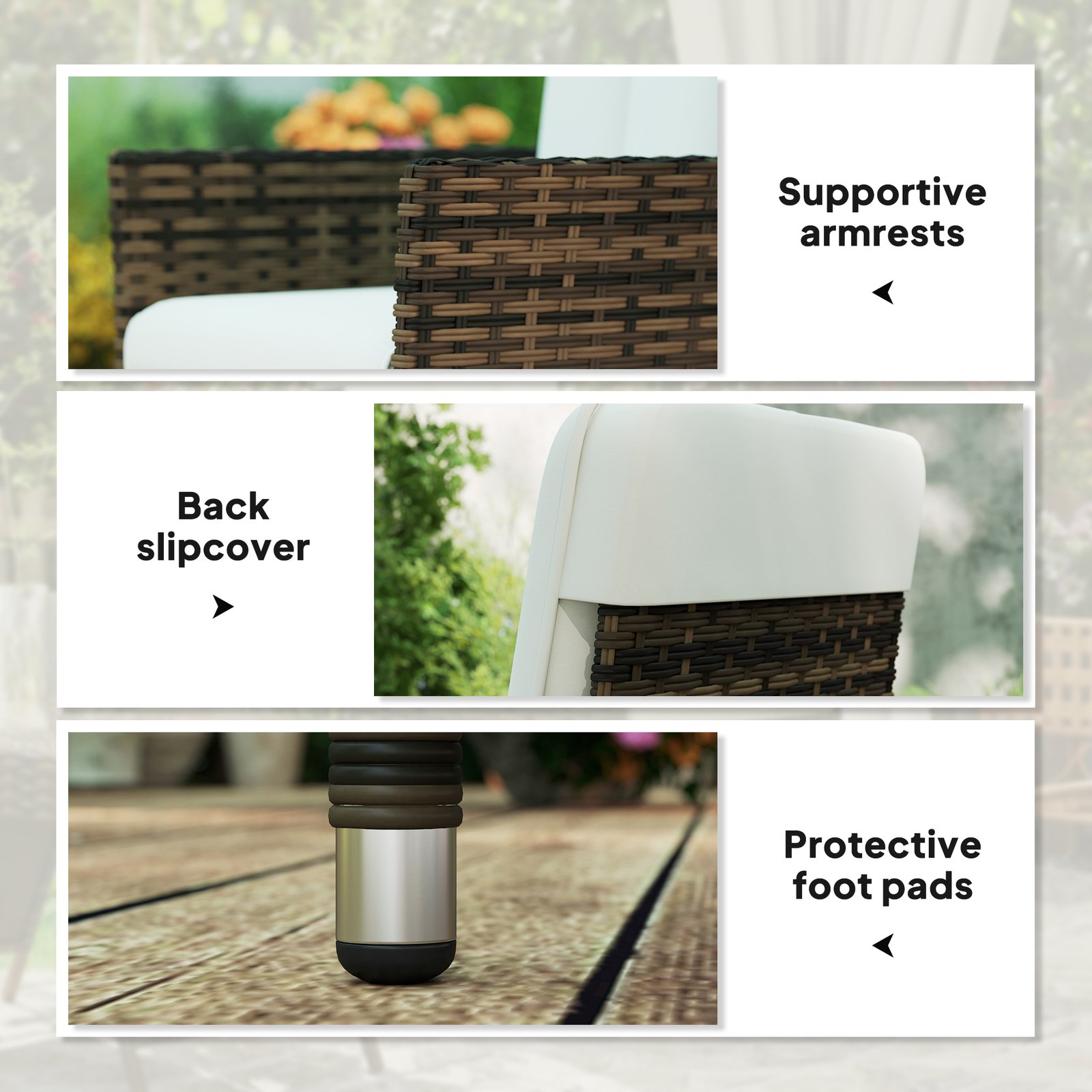 Comfort your way with this Outsunny rattan recliner chair. Adjust the back easily between 105°-150°: lie back to the position you want. It comes with a thick padded seat cushion for comfort, with washable covers to ensure they keep clean. Using powder coated steel for a strong core, wrapped in stylish and protective plastic rattan to finish.