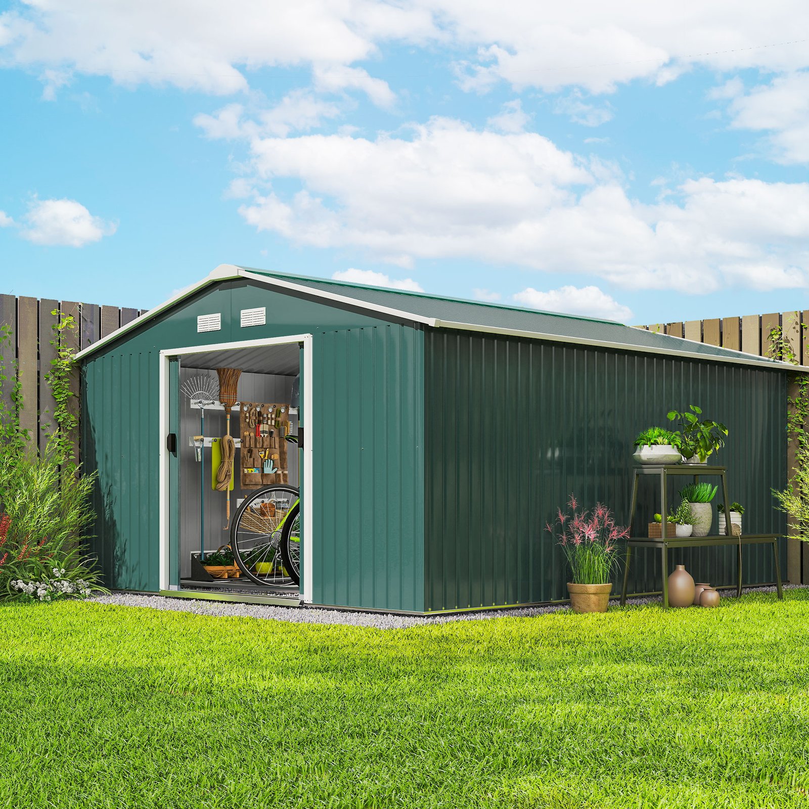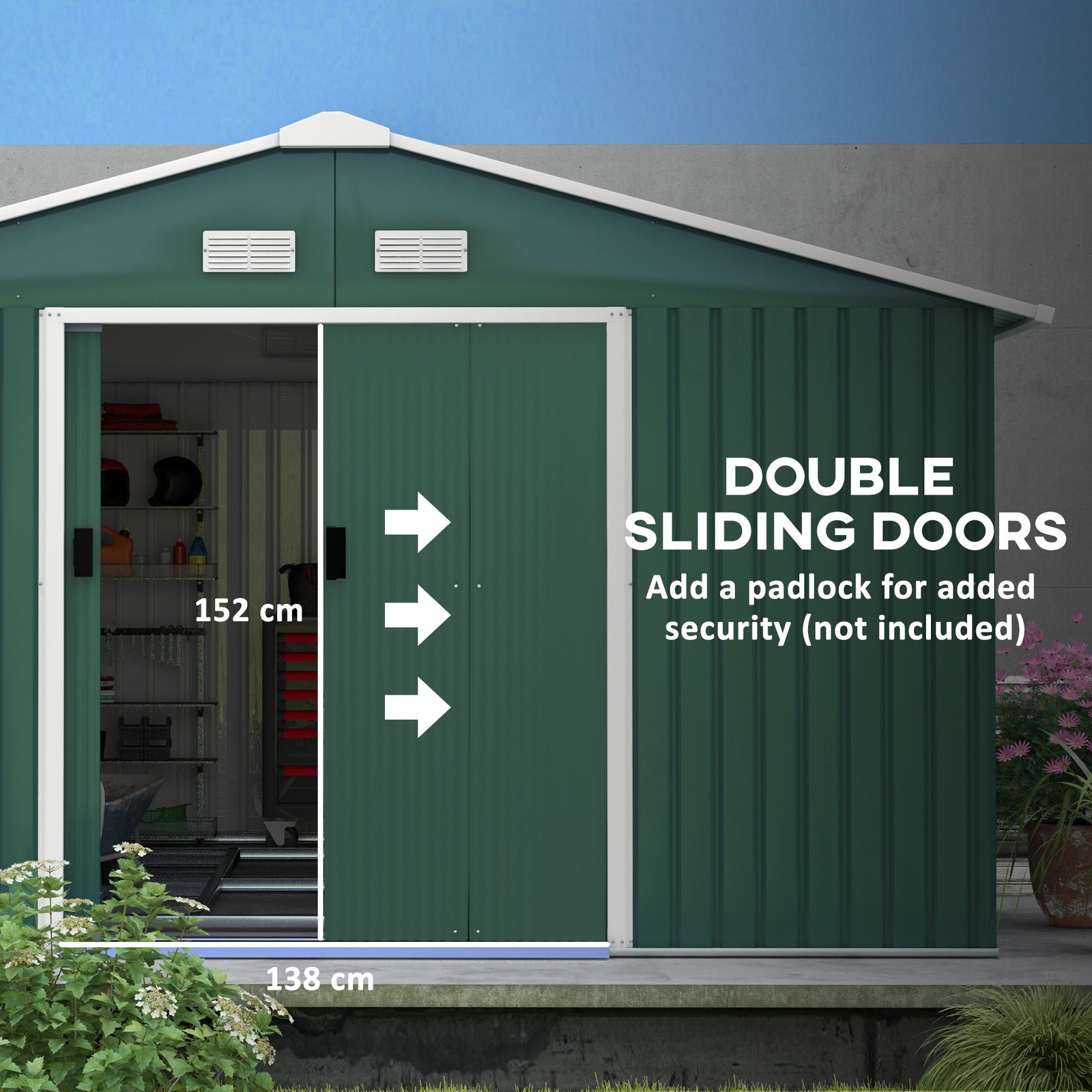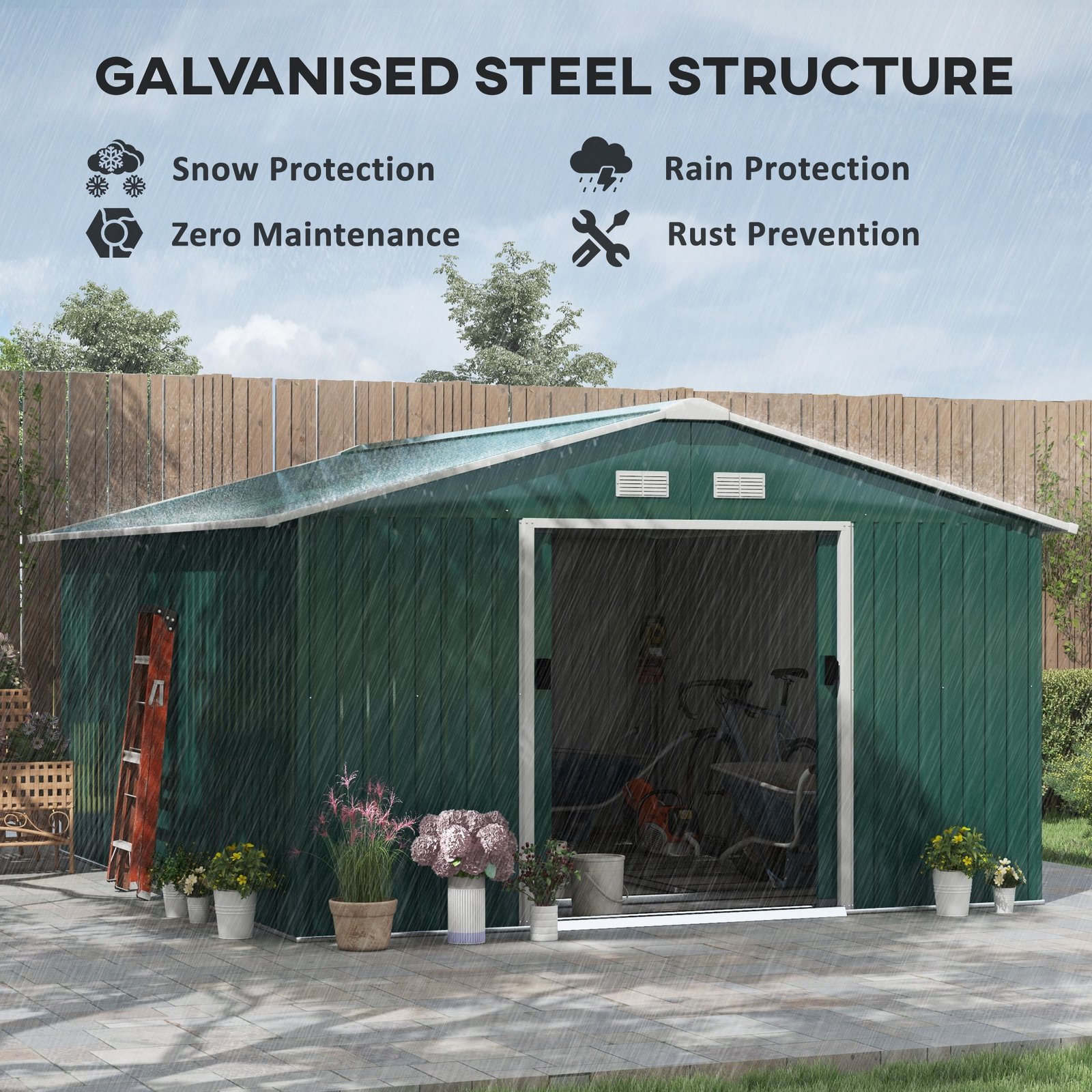 Keep your garden equipment and outdoor essentials locked away securely with this fantastic outdoor shed from Outsunny. Made from galvanised steel for enduring reliability. With a sloped roof sitting on the top to help prevent water stagnating and rust forming, this shed is finished with a protective weather coating and floor foundation so you have everything you need to install this piece. The perfect home for all your outdoor tools and gear.