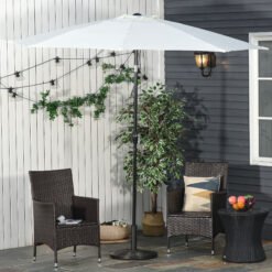 This Outsunny parasol base allows you to enjoy outdoors, with proper protection. Keep yourself shielded with an Outsunny parasol which stands straight and in place – the middle holder fits poles of 35mm/38mm/48mm in diameter, with a tightening screw for security. The weighted base supports up to 13kg, with a rattan-effect top to complement your current garden furniture. Enjoy sunshine days even more now.