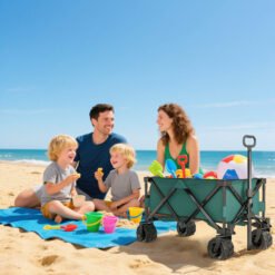- Four wheels, two of which rotate around fully, to move the cart around on sand and solid ground