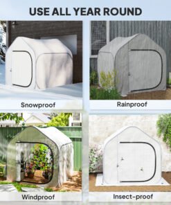 No matter the space, you can grow plants, flowers or small vegetables with this Outsunny pop-up greenhouse! A mini 150 x 148cm size, it is portable and foldable: bring out and store away easily, whenever. Fitted with a 140g/m² plastic cover, keeping inside shielded from rain and wind, whilst letting nourishing sunlight through – encouraging all the growth as possible. The growing possibilities are endless…
