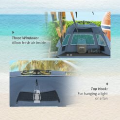 Keep yourself safely protected when at the beach, thanks to this Outsunny pop up beach tent. The design means it’ll be up in seconds; it folds back down just as easily. Using fibreglass poles for the core to stay in shape, it’s spacious enough to enjoy the sea and sand with a friend. The open front allows you to appreciate beautiful views. Finished with three mesh windows.