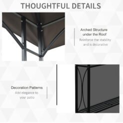 This Outsunny 8ft double tier BBQ canopy is a must in the summer season. It creates a cover above your BBQ area making it easy to cook and serve. It features a double canopy for air circulation and venting, it also has two side serving tables making it easier for family or guests. The gazebo is made from a metal structure with the top cover made from flame resistant polyester. This is a great item to have to entertain family and friends and a great item to match your outdoor space.