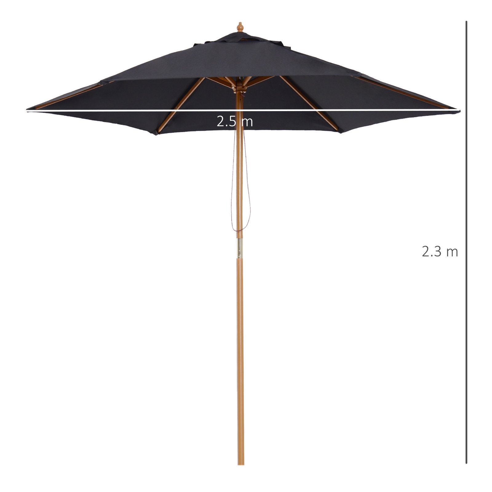 - 2.5m large parasol supported by 6 wooden ribs