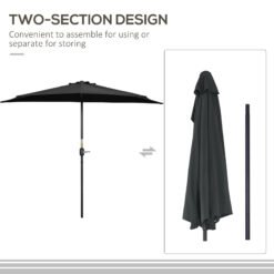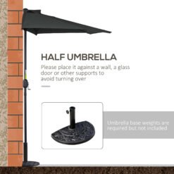 This Outsunny solar parasol is a great addition to anyone who wishes to have a balcony parasol half but has limited space. This garden umbrella is ideal for balconies or small gardens and someone who wishes to still have the illusion of a full parasol. The patio umbrella is made from an metal frame and the covering is a UV resistant waterproof PE cloth. Our sun umbrella is a great product and a great solution for any balcony or patio.