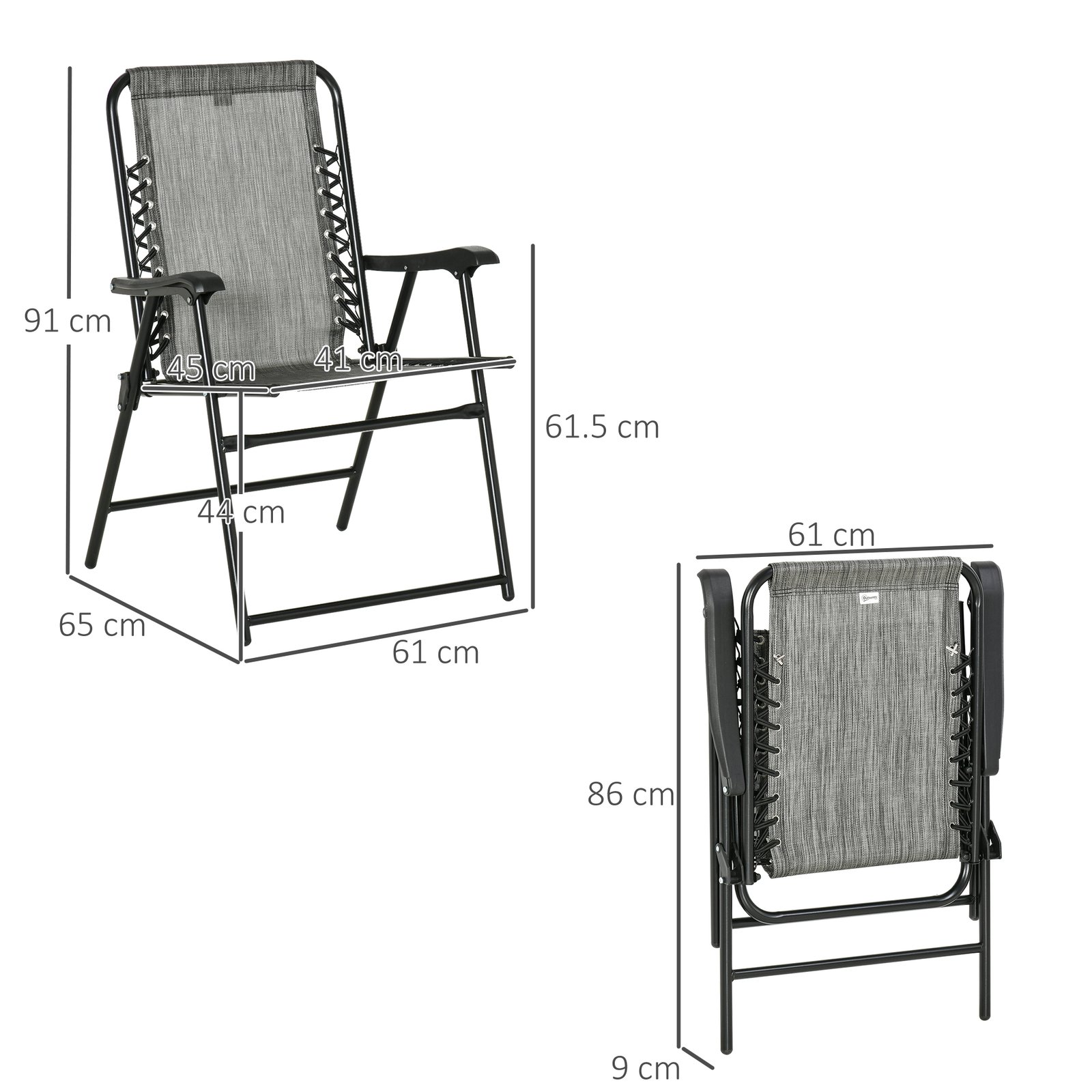 This two-piece outdoor folding chair set from Outsunny is ideal for any gathering, both indoor and outdoor. The chair made of heavy-duty steel frame with powder-coated process, bonded with weather-resistant breathable mesh fabric for both sturdy and comfortable. Lightweight and foldable design make it easy to fold into compact size for space-saving, you can easy transport and storage when not in use. Spend no time to assemble and enjoy a lot.