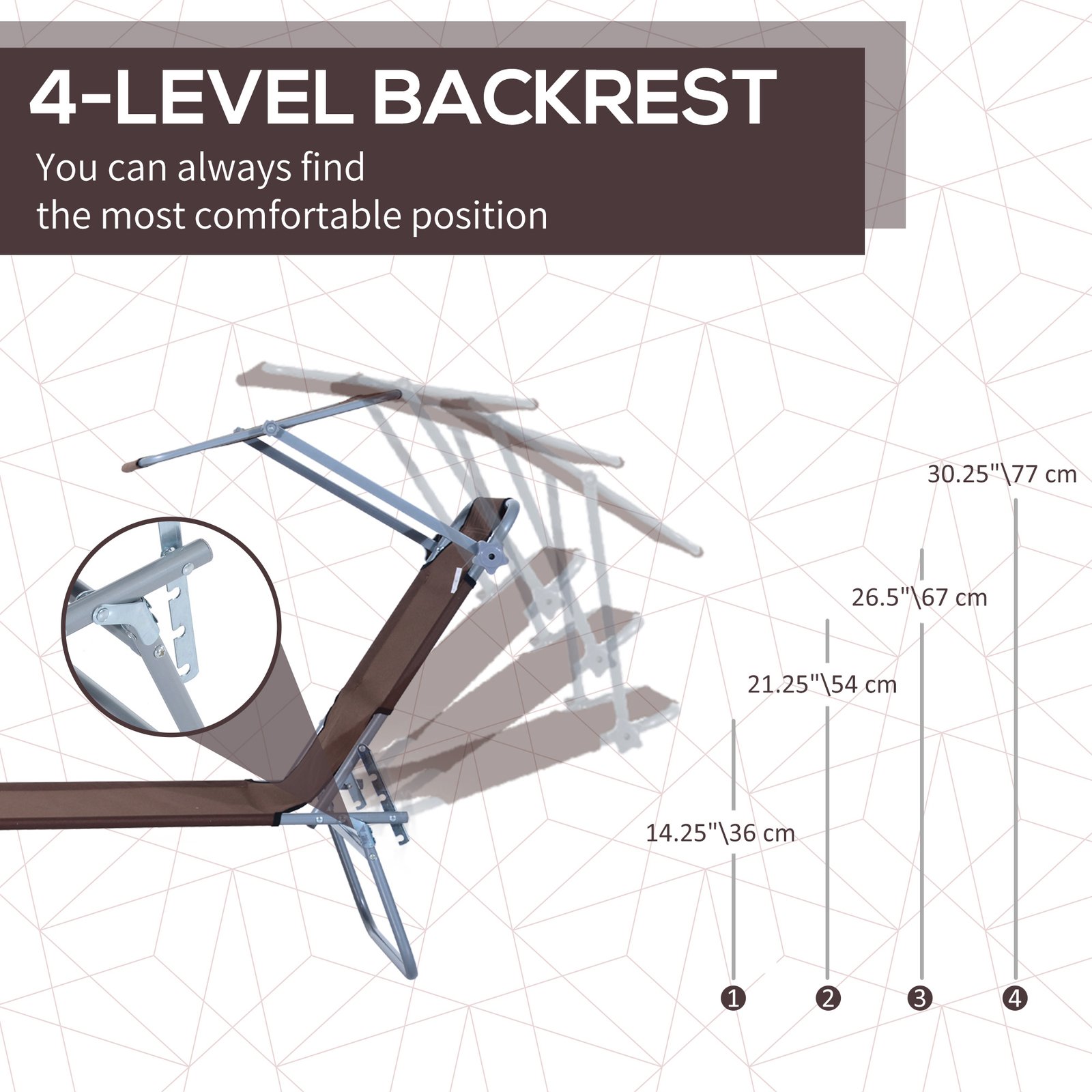 - Four-level adjustable back for personalized comfort