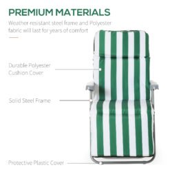 Outsunny 2 Pieces Outdoor Sun Lounger Set with Cushions, Patio Folding 5-Level   Adjustable Backrest Recliner Chairs Set of 2 with High Backrest and Armrests, Green & White
