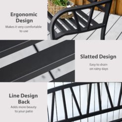 Make your garden complete with this outdoor bench from Outsunny. Made from metal, the structure of the outside bench is sturdy and tough for daily use all-year round. Whilst it’s pretty simple to look at, the line design on the back gives the 2 seater garden bench some character so it stands out. Tall back and armrests give your body support as you sit on the garden bench seat. Adding a touch of minimal style into your space has never been easier.