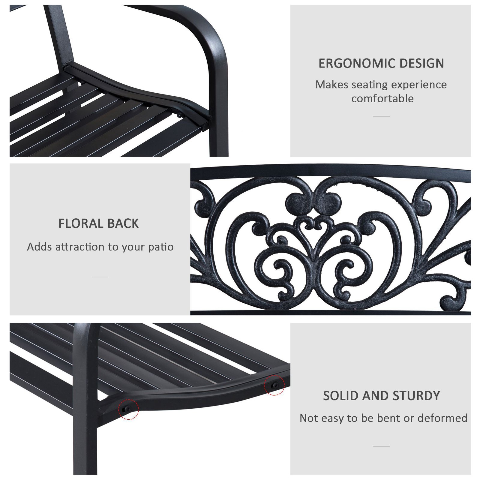 - Beautifully designed powder coated bench to add elegance to your patio or backyard