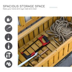 Easy storage done the stylish way. This outdoor bench from Outsunny gives you a place to sit and a handy place to keep your outdoor pieces all together. Made from solid and weather-resistant fir wood, it’s crafted into a two-seater size so you can relax with a friend. The high back and armrests support your body, the cut-out panels keep you cool. Underneath the seat is the storage area, which also is surrounded with cut-out panels to prevent moisture build-up inside. It’s finished with four stump feet. A must for the sunny seasons ahead.